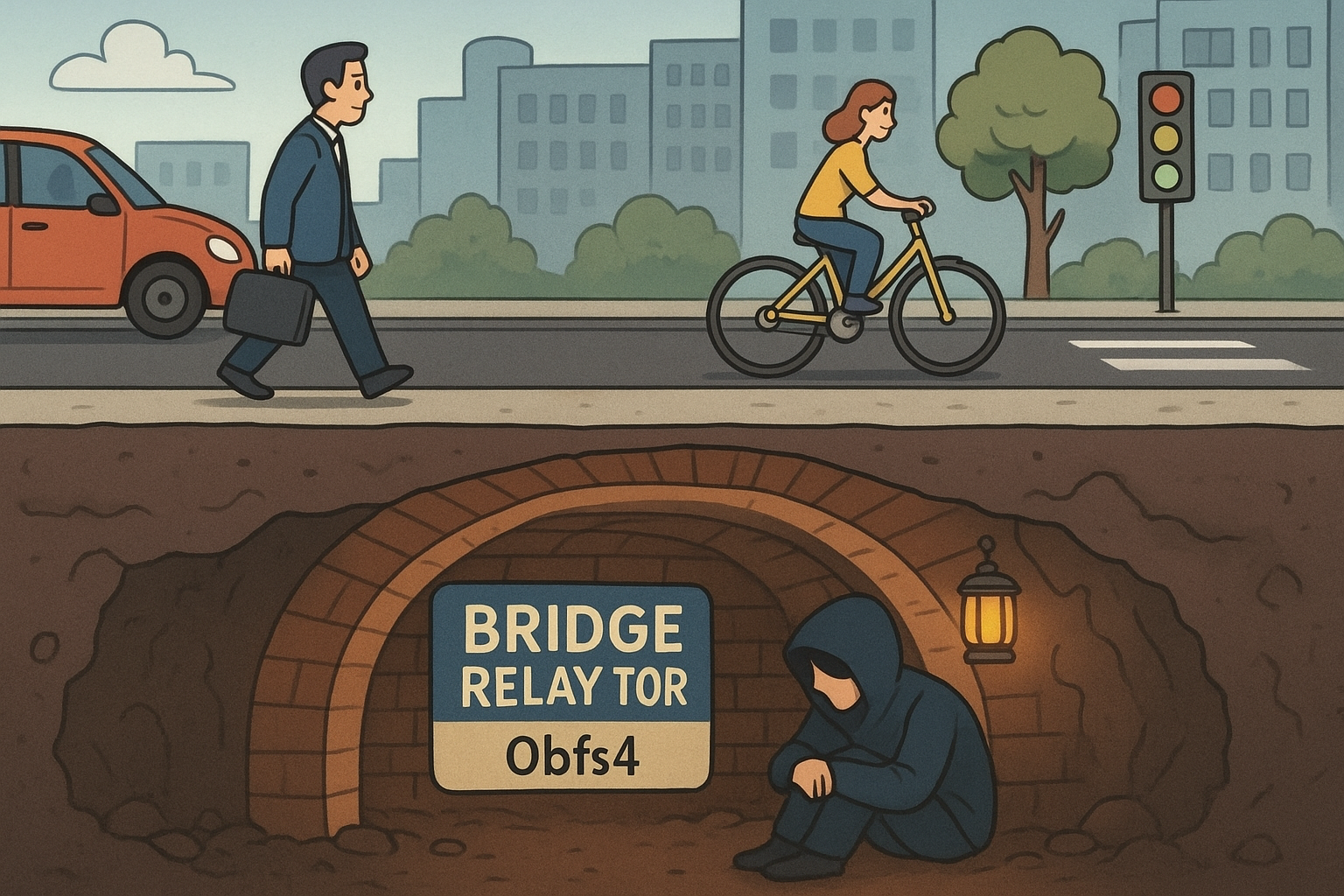 Bayangkan sebuah terowongan rahasia di bawah jalanan yang ramai. Meski penjaga berjaga di setiap persimpangan, mereka tak pernah menyadari keberadaannya. Di dunia digital, terowongan itu bernama Bridge Relay Tor, dan Obfs4 adalah teknologi yang membuatnya tak terlihat.