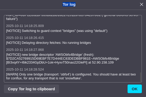 | sudo grep -E "(error|warn|failed)" /var/log/tor/tor.log | tail -10