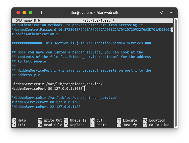 HiddenServiceDir /var/lib/tor/hidden_service/