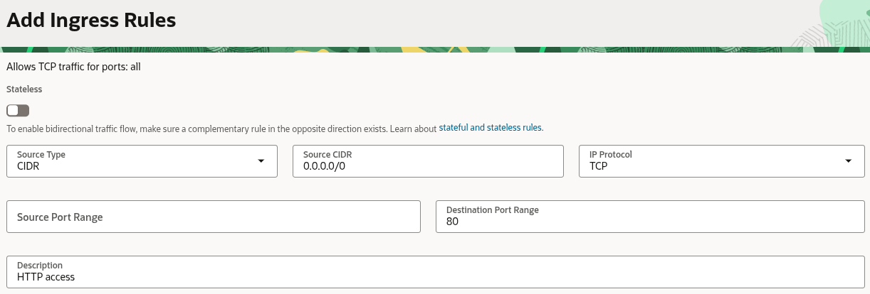 - Pertimbangkan untuk menambahkan rule HTTPS (port 443) juga