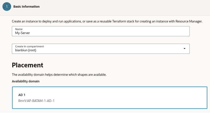 - Availability Domain: Pada akun free tier, biasanya hanya tersedia satu availability domain