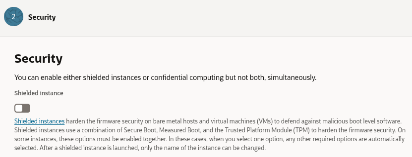 Pertahankan pengaturan keamanan default dengan menonaktifkan shielded instance.