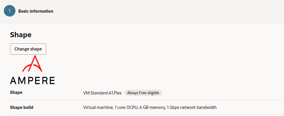 - Free tier menyediakan shape VM.Standard.A1.Flex (1 OCPU, 6GB memory)