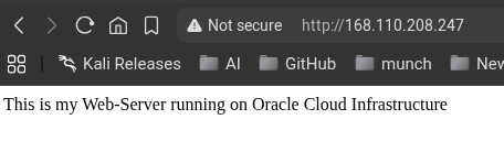 ) - Seharusnya menampilkan halaman “This is my Web-Server running on Oracle Cloud Infrastructure”