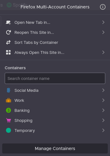 - Gunakan ekstensi “Temporary Containers” untuk isolasi otomatis situs baru