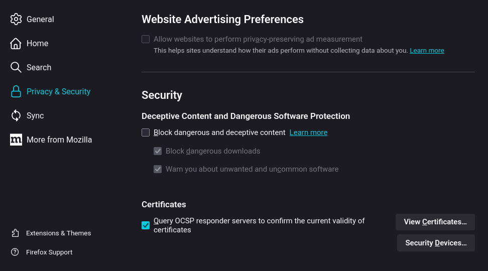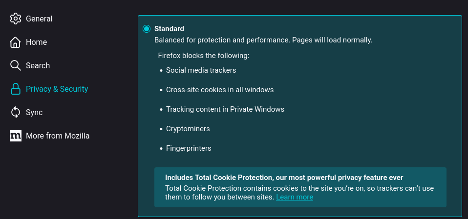 - Mengoptimalkan konfigurasi privasi native Firefox